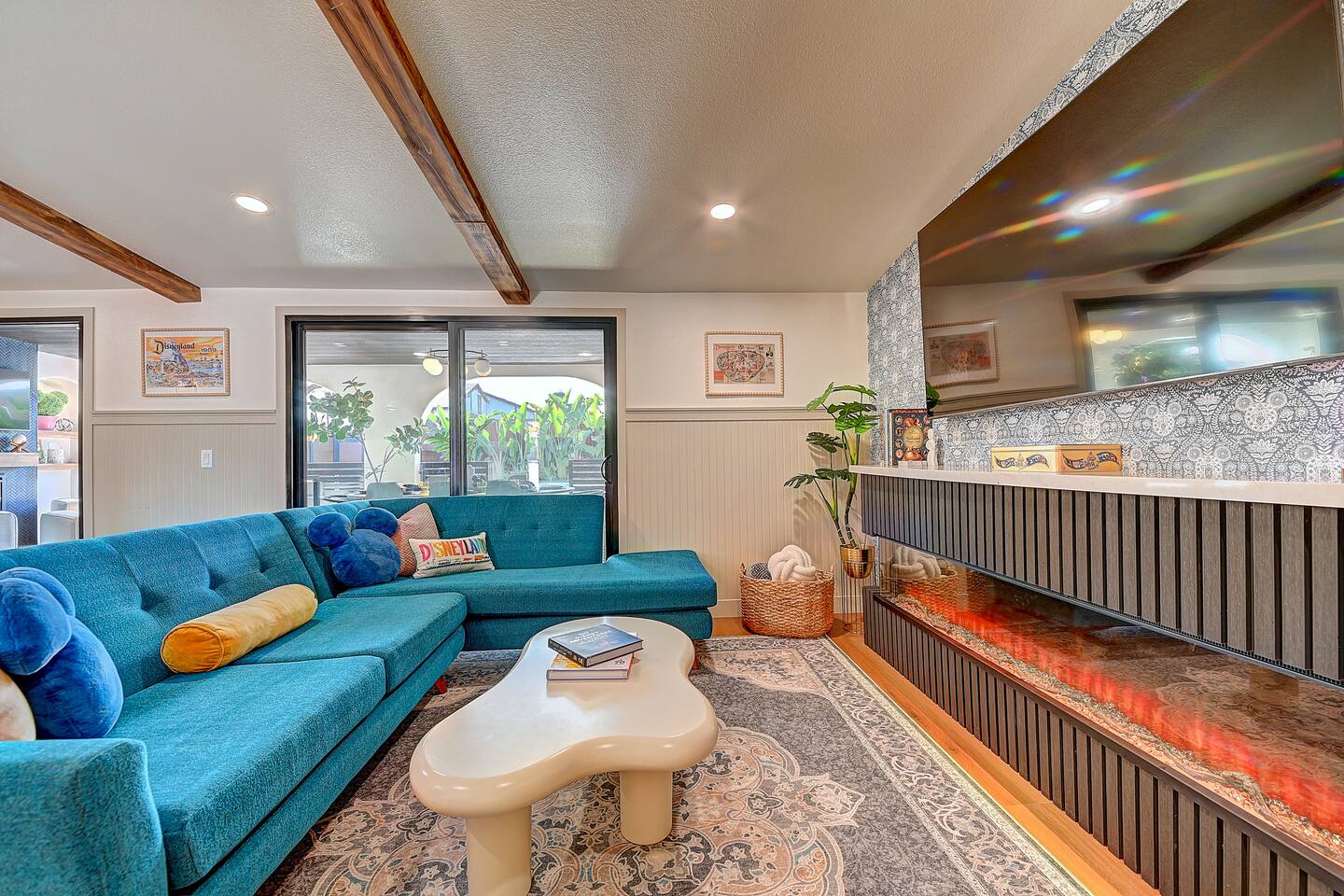 Located in West Anaheim, the home is located in a quiet, established residential pocket made up mostly of mid-century single family homes on tree-lined streets. The area has a relaxed suburban feel with long-time homeowners and a strong sense of community.