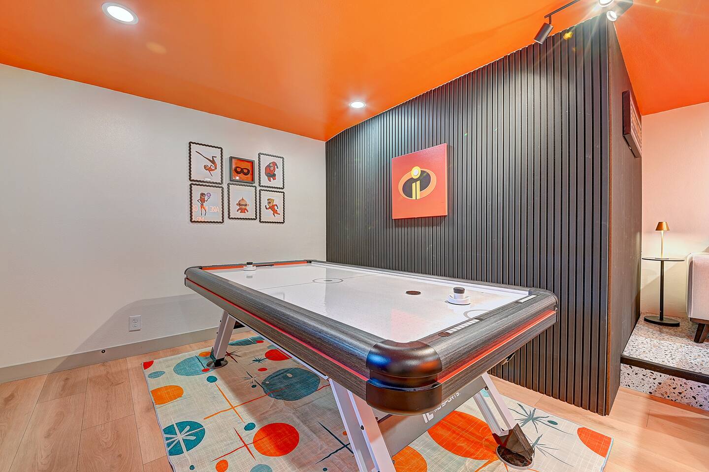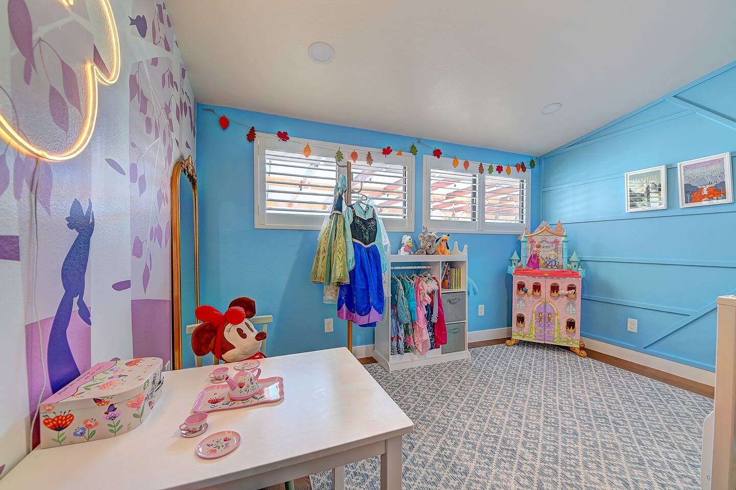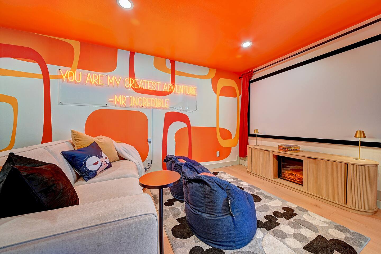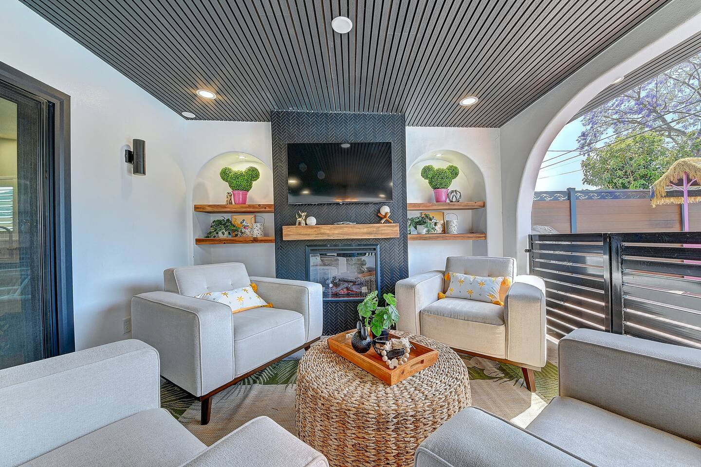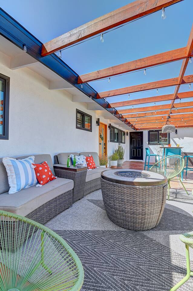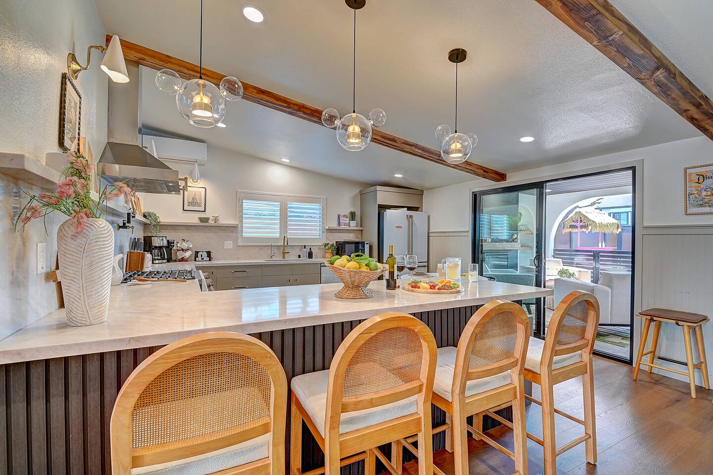 Perfect SoCal Location: 🏰 Disneyland Park 📍2 miles | 🚗 5–10 minutes ✈️ John Wayne Airport (SNA) 📍 14 miles | 🚗 15–20 minutes ✈️ Los Angeles International Airport 📍 35 miles | 🚗 40–60 minutes (traffic dependent) ⚾ Angel Stadium 📍 3 miles | 🚗 5–10 minutes 🏒 Honda Center 📍 4 miles | 🚗 8–12 minutes 🌊 Huntington Beach 📍 15 miles | 🚗 20–30 minutes ⸻ ✨ Your Home Away From Home ✶ 2000 sqft of living space ✶ Open-concept layout with exposed wood beams ✶ 5 Comfortable Bedrooms Designed for Rest ✶ Multiple en-suite bathrooms make mornings easy for larger groups ✶ Quality mattresses and hotel bedding ✶ Game Room and Theater 🎥 ✶ Air Hockey + Foosball ✶ Fully equipped chef’s kitchen with quartz countertops & premium appliances ✶ Dining space perfect for family-style meals ✶ Smart TVs throughout the home ✶ Three fireplaces for cozy evenings 🔥 ✶ Board games for unplugged fun ✶ Laundry room with Washer & dryer for longer stays ✶ Crib, toddler bed + high chair for your littlest Mouseketeers 👶 ✶ High-speed WiFi ✶ Free driveway parking space for 4 vehicles ✶ EV charger available ⸻ 🌴 Outdoor Living (Where You’ll Want to Stay All Day) ✶ Large heated pool 🏊 ✶ Outdoor mini golf (putt putt) ⛳ ✶ Yard Games: corn hole, bowling, Connect 4, Jenga ✶ Fire pit ✶ BBQ Grill ✶ Two Pergolas and Multiple lounge areas for relaxing ✶ Outdoor dining space for al fresco meals ✶ Covered California room with dining, seating, Smart TV and fireplace 🔥 ✶ Side yard with foosball + quiet seating area (think - mom's private time) ✶ Café string lights for magical evenings ✨ From pool days to fireside evenings, this backyard was made for core memory moments. ⸻ 🎬 Guest-Favorite Incredibles - Themed Game Room & Theater ✶ Theater-style viewing area ✶ Air hockey table 🏒 ✶ Foosball table ⚽ ✶ Lounge seating for movie nights ✶ Perfect teen hangout or rainy-day fun ⸻ 🍽️ Fully Equipped Kitchen ✶ Spacious open-concept layout ✶ Premium GE Cafe appliances and Pot-filler ✶ Fully stocked for cooking at home ✶ Waterfall island with bar seating for gathering ✶ Coffee bar with kettle, Keurig & drip options, coffee included! ✶ Kid-friendly dishes, cups, high chairs, and essentials Because traveling with kids should feel easy—not stressful. ⸻ 🧺 Dedicated laundry room (with a nod to Cinderella) ⸻ 🛏️ Sleeping Arrangements (5 Bedrooms) 🦁 Primary Suite (Lion King Inspired) ✶ King bed ✶ Private entrance from the California room ✶ En-suite updated tiled bathroom ✶ Walk-in closet ✶ Seating area (perfect for coffee or working) ✶ Space for a crib ✶ Smart TV ✶ Elegantly themed with personal safari photography ⸻ 🎪 Secondary Suite (Dumbo Inspired) ✶ Queen bed ✶ En-suite modern bathroom ✶ Smart TV ✶ Light, whimsical, and beautifully designed ⸻ ❄️ Kids Room (Frozen 2-Inspired) ✶ Full-over-twin bunk ✶ Twin trundle perfect for toddlers ✶ Princess dresses for dress-up ✶ Dollhouse + kids table for coloring or tea parties A dreamy space designed just for little ones ✨ ⸻ 🧙♀️ Wicked-Themed Room ✶ Two full-size beds ✶ Sliding door to relaxing side patio Note: While magical in its own way (and we know it’s not Disney 😉), this room has direct access to the pool area and is not recommended for small children. ⸻ 🏝️ Pirates of the Caribbean - Inspired Room ✶ Queen bed ✶ Smart TV ✶ sliding door with access to side yard + pool area A bold and immersive space for adventure lovers ⸻ 💛 Why Families Love Staying Here This isn’t just a place to sleep—it’s a home designed for real family travel. After a full day at Disneyland Park, come back to a space where both kids and adults can unwind, recharge, and create core memories together. ✔️ Thoughtfully stocked for kids ✔️ Spacious, design-forward interiors ✔️ Indoor + outdoor spaces to spread out ✔️ Close to the parks, but peaceful enough to truly relax 🌴 Book your Anaheim escape and experience the magic for yourself. ✨