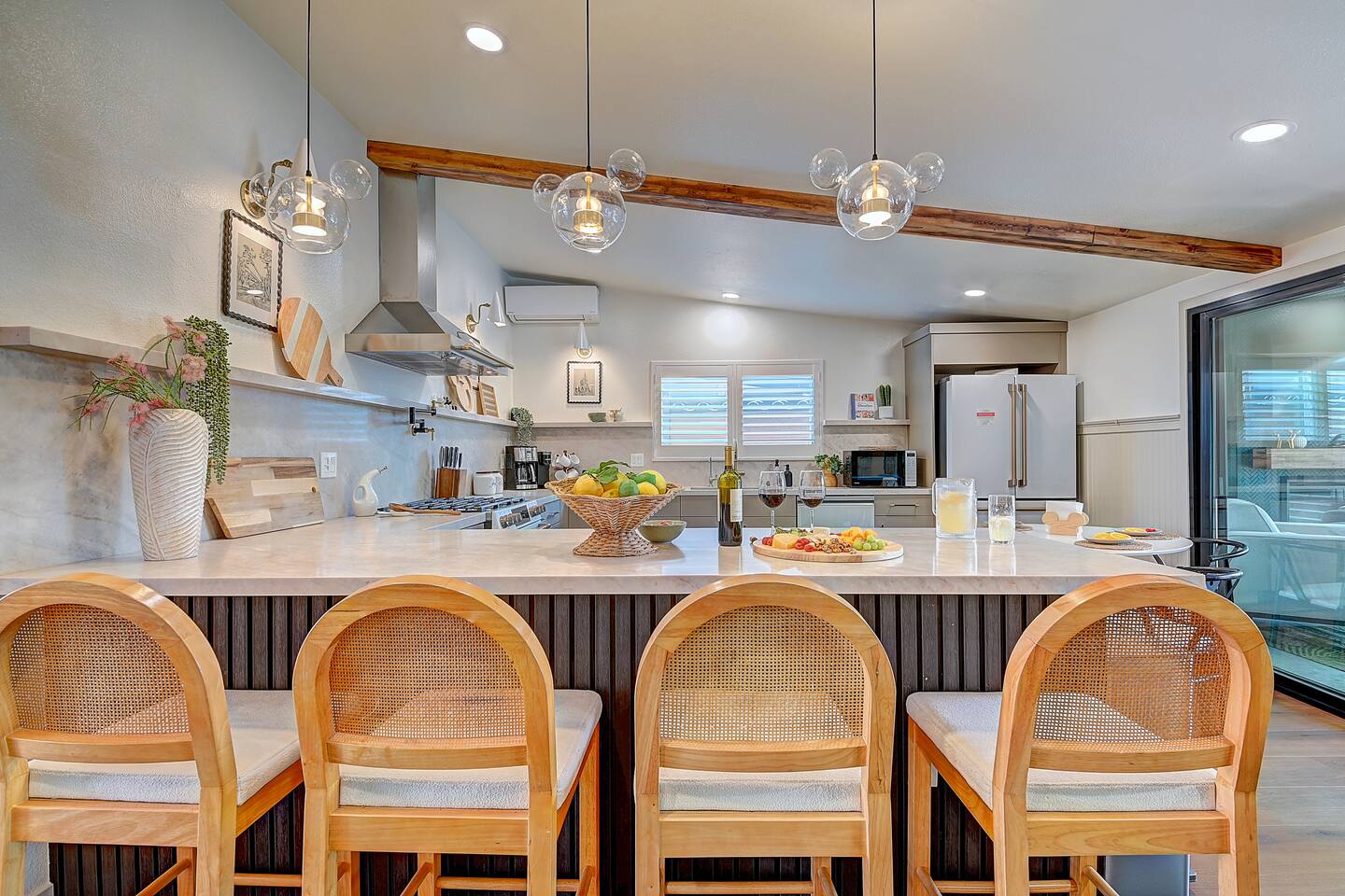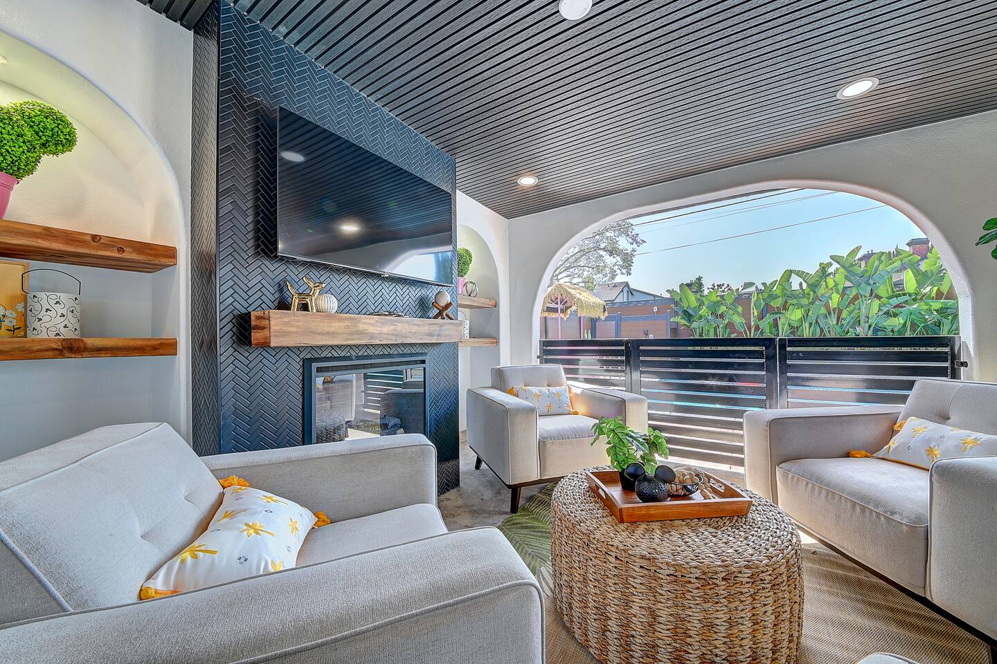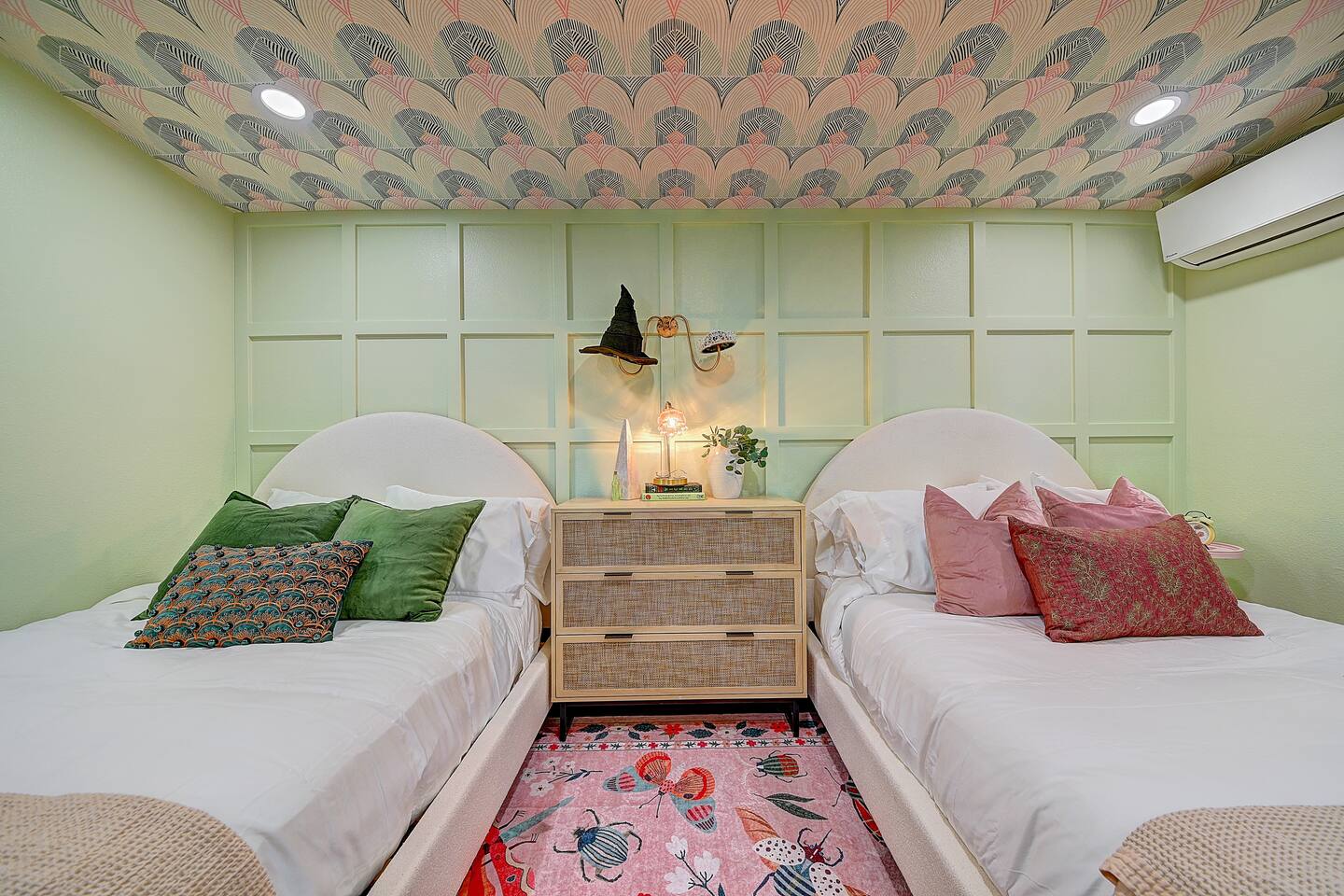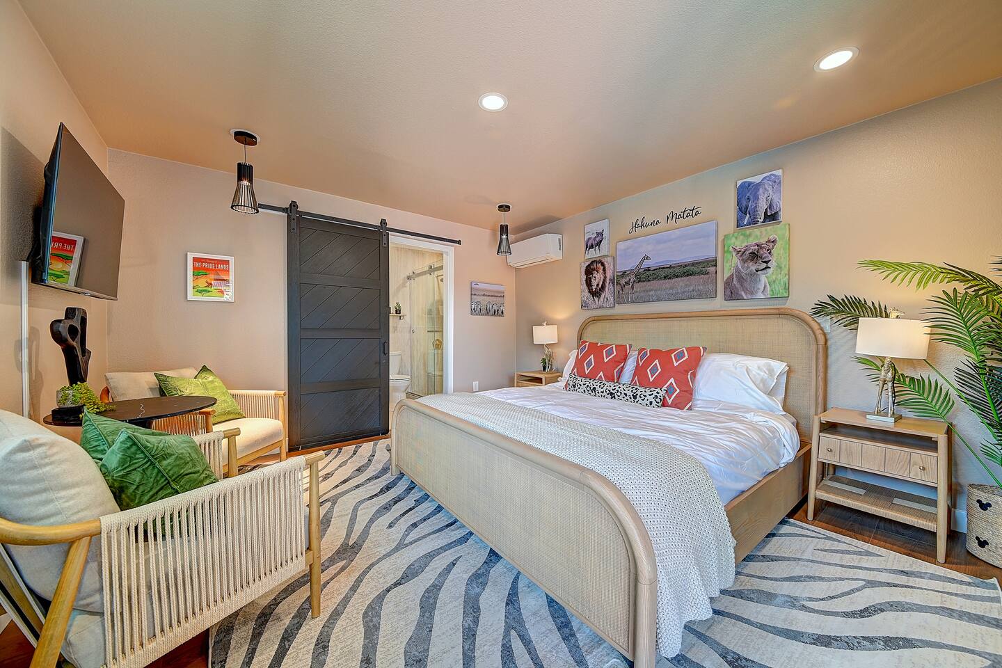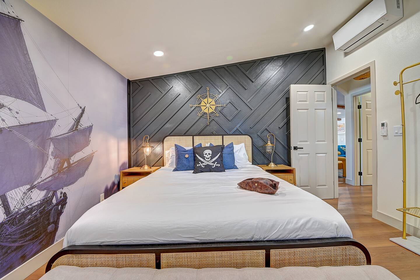 Perfect SoCal Location: 🏰 Disneyland Park 📍2 miles | 🚗 5–10 minutes ✈️ John Wayne Airport (SNA) 📍 14 miles | 🚗 15–20 minutes ✈️ Los Angeles International Airport 📍 35 miles | 🚗 40–60 minutes (traffic dependent) ⚾ Angel Stadium 📍 3 miles | 🚗 5–10 minutes 🏒 Honda Center 📍 4 miles | 🚗 8–12 minutes 🌊 Huntington Beach 📍 15 miles | 🚗 20–30 minutes ⸻ ✨ Your Home Away From Home ✶ 2000 sqft of living space ✶ Open-concept layout with exposed wood beams ✶ 5 Comfortable Bedrooms Designed for Rest ✶ Multiple en-suite bathrooms make mornings easy for larger groups ✶ Quality mattresses and hotel bedding ✶ Game Room and Theater 🎥 ✶ Air Hockey + Foosball ✶ Fully equipped chef’s kitchen with quartz countertops & premium appliances ✶ Dining space perfect for family-style meals ✶ Smart TVs throughout the home ✶ Three fireplaces for cozy evenings 🔥 ✶ Board games for unplugged fun ✶ Laundry room with Washer & dryer for longer stays ✶ Crib, toddler bed + high chair for your littlest Mouseketeers 👶 ✶ High-speed WiFi ✶ Free driveway parking space for 4 vehicles ✶ EV charger available ⸻ 🌴 Outdoor Living (Where You’ll Want to Stay All Day) ✶ Large heated pool 🏊 ✶ Outdoor mini golf (putt putt) ⛳ ✶ Yard Games: corn hole, bowling, Connect 4, Jenga ✶ Fire pit ✶ BBQ Grill ✶ Two Pergolas and Multiple lounge areas for relaxing ✶ Outdoor dining space for al fresco meals ✶ Covered California room with dining, seating, Smart TV and fireplace 🔥 ✶ Side yard with foosball + quiet seating area (think - mom's private time) ✶ Café string lights for magical evenings ✨ From pool days to fireside evenings, this backyard was made for core memory moments. ⸻ 🎬 Guest-Favorite Incredibles - Themed Game Room & Theater ✶ Theater-style viewing area ✶ Air hockey table 🏒 ✶ Foosball table ⚽ ✶ Lounge seating for movie nights ✶ Perfect teen hangout or rainy-day fun ⸻ 🍽️ Fully Equipped Kitchen ✶ Spacious open-concept layout ✶ Premium GE Cafe appliances and Pot-filler ✶ Fully stocked for cooking at home ✶ Waterfall island with bar seating for gathering ✶ Coffee bar with kettle, Keurig & drip options, coffee included! ✶ Kid-friendly dishes, cups, high chairs, and essentials Because traveling with kids should feel easy—not stressful. ⸻ 🧺 Dedicated laundry room (with a nod to Cinderella) ⸻ 🛏️ Sleeping Arrangements (5 Bedrooms) 🦁 Primary Suite (Lion King Inspired) ✶ King bed ✶ Private entrance from the California room ✶ En-suite updated tiled bathroom ✶ Walk-in closet ✶ Seating area (perfect for coffee or working) ✶ Space for a crib ✶ Smart TV ✶ Elegantly themed with personal safari photography ⸻ 🎪 Secondary Suite (Dumbo Inspired) ✶ Queen bed ✶ En-suite modern bathroom ✶ Smart TV ✶ Light, whimsical, and beautifully designed ⸻ ❄️ Kids Room (Frozen 2-Inspired) ✶ Full-over-twin bunk ✶ Twin trundle perfect for toddlers ✶ Princess dresses for dress-up ✶ Dollhouse + kids table for coloring or tea parties A dreamy space designed just for little ones ✨ ⸻ 🧙♀️ Wicked-Themed Room ✶ Two full-size beds ✶ Sliding door to relaxing side patio Note: While magical in its own way (and we know it’s not Disney 😉), this room has direct access to the pool area and is not recommended for small children. ⸻ 🏝️ Pirates of the Caribbean - Inspired Room ✶ Queen bed ✶ Smart TV ✶ sliding door with access to side yard + pool area A bold and immersive space for adventure lovers ⸻ 💛 Why Families Love Staying Here This isn’t just a place to sleep—it’s a home designed for real family travel. After a full day at Disneyland Park, come back to a space where both kids and adults can unwind, recharge, and create core memories together. ✔️ Thoughtfully stocked for kids ✔️ Spacious, design-forward interiors ✔️ Indoor + outdoor spaces to spread out ✔️ Close to the parks, but peaceful enough to truly relax 🌴 Book your Anaheim escape and experience the magic for yourself. ✨