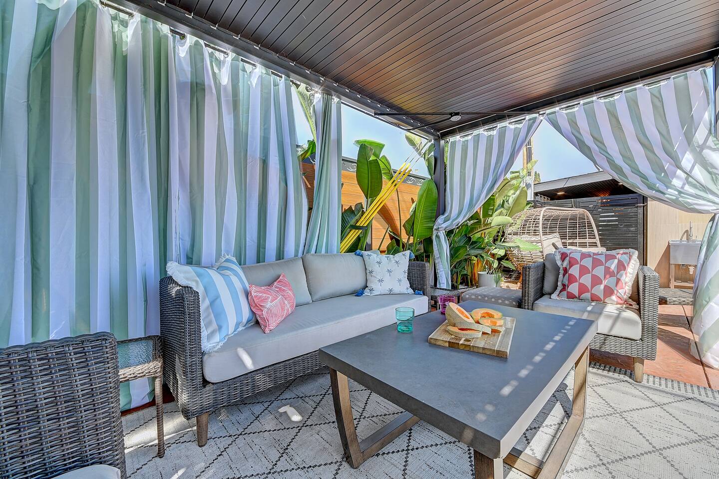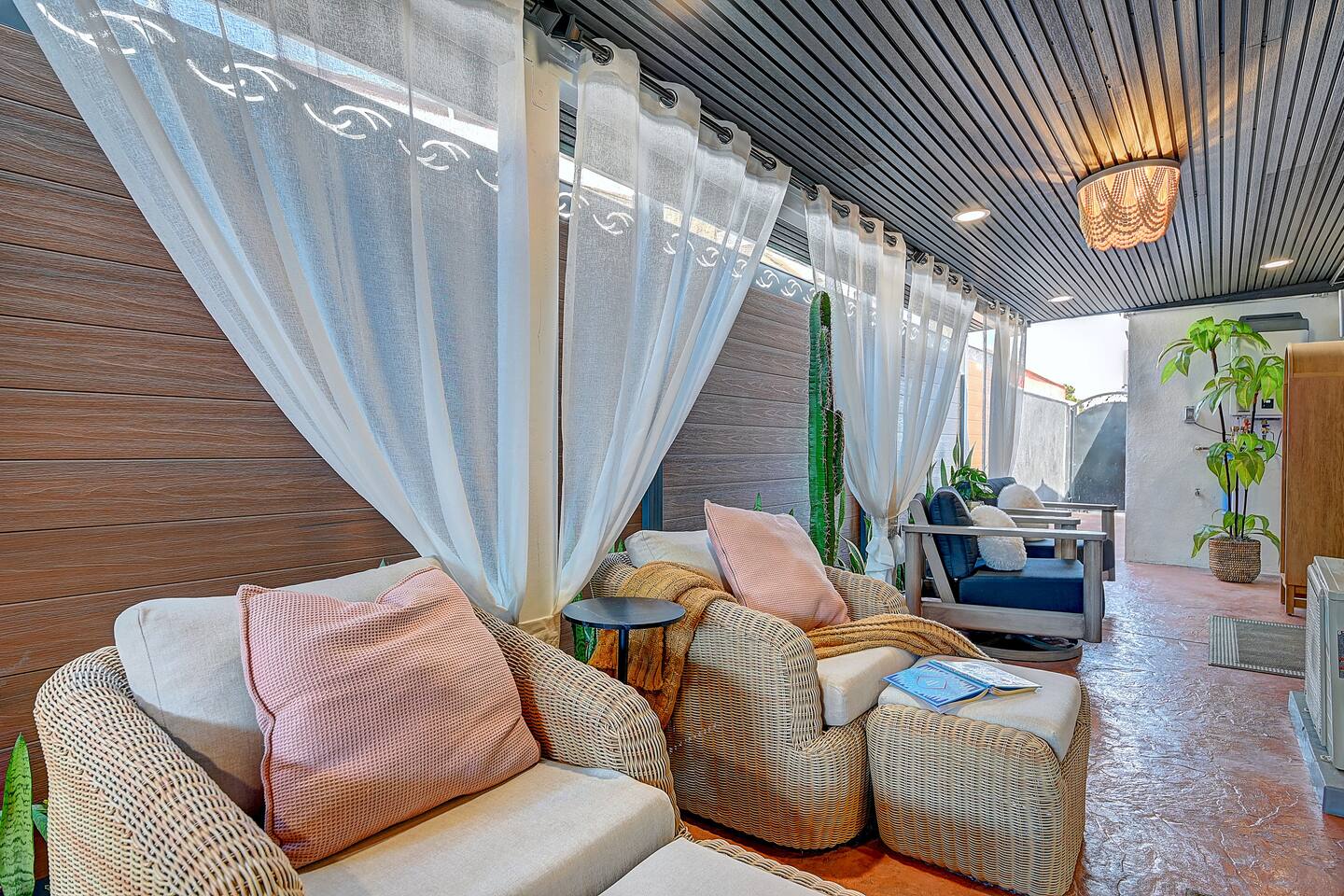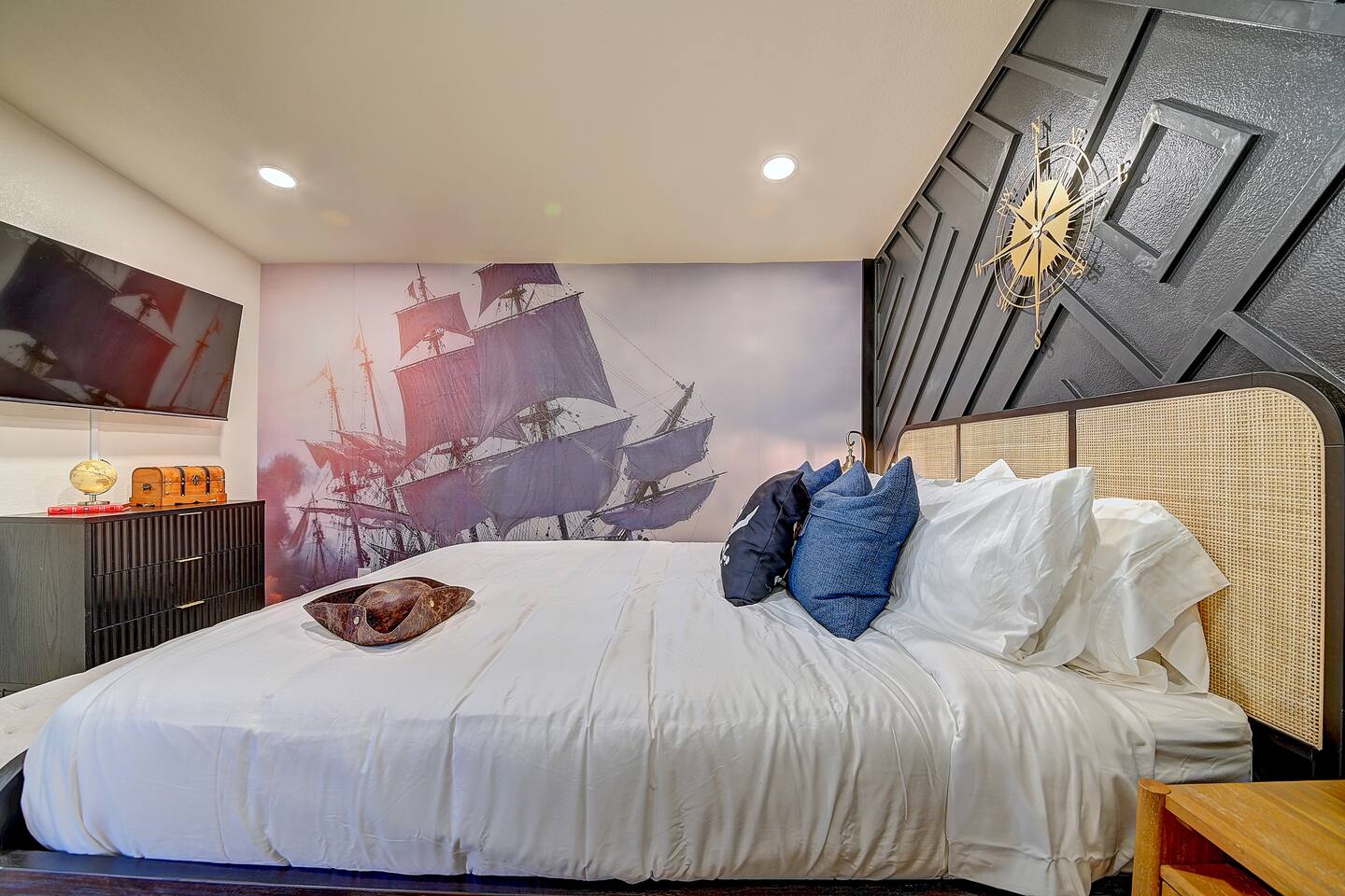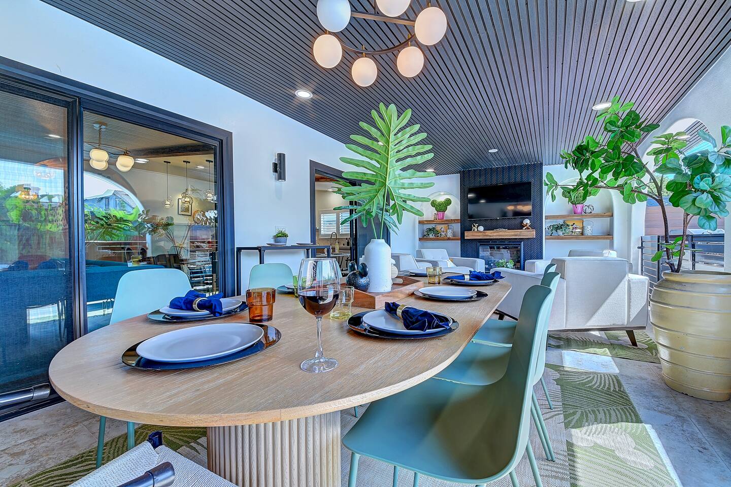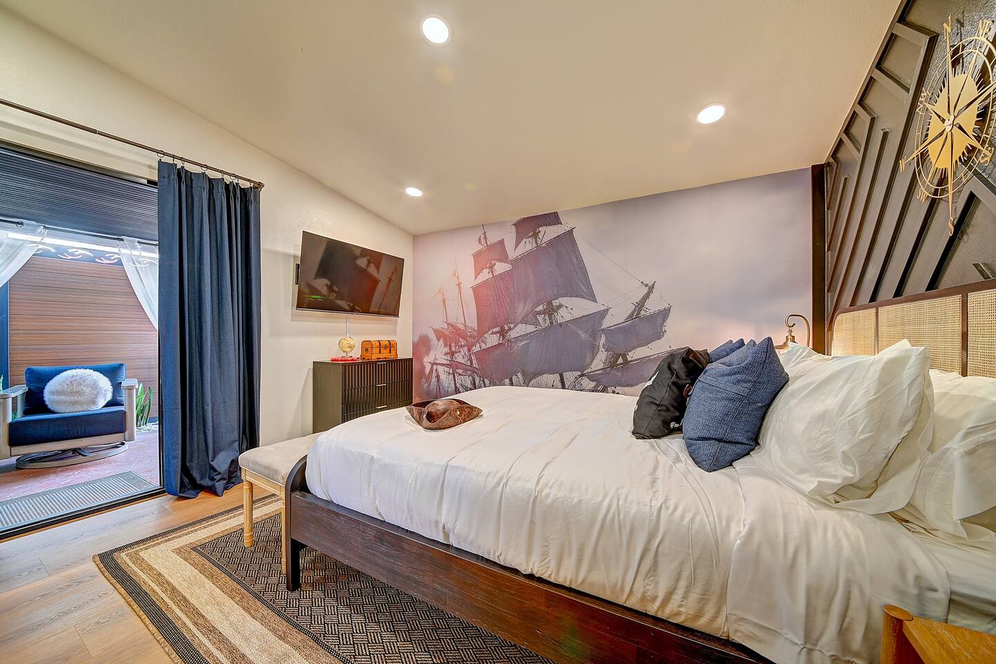 Perfect SoCal Location: 🏰 Disneyland Park 📍2 miles | 🚗 5–10 minutes ✈️ John Wayne Airport (SNA) 📍 14 miles | 🚗 15–20 minutes ✈️ Los Angeles International Airport 📍 35 miles | 🚗 40–60 minutes (traffic dependent) ⚾ Angel Stadium 📍 3 miles | 🚗 5–10 minutes 🏒 Honda Center 📍 4 miles | 🚗 8–12 minutes 🌊 Huntington Beach 📍 15 miles | 🚗 20–30 minutes ⸻ ✨ Your Home Away From Home ✶ 2000 sqft of living space ✶ Open-concept layout with exposed wood beams ✶ 5 Comfortable Bedrooms Designed for Rest ✶ Multiple en-suite bathrooms make mornings easy for larger groups ✶ Quality mattresses and hotel bedding ✶ Game Room and Theater 🎥 ✶ Air Hockey + Foosball ✶ Fully equipped chef’s kitchen with quartz countertops & premium appliances ✶ Dining space perfect for family-style meals ✶ Smart TVs throughout the home ✶ Three fireplaces for cozy evenings 🔥 ✶ Board games for unplugged fun ✶ Laundry room with Washer & dryer for longer stays ✶ Crib, toddler bed + high chair for your littlest Mouseketeers 👶 ✶ High-speed WiFi ✶ Free driveway parking space for 4 vehicles ✶ EV charger available ⸻ 🌴 Outdoor Living (Where You’ll Want to Stay All Day) ✶ Large heated pool 🏊 ✶ Outdoor mini golf (putt putt) ⛳ ✶ Yard Games: corn hole, bowling, Connect 4, Jenga ✶ Fire pit ✶ BBQ Grill ✶ Two Pergolas and Multiple lounge areas for relaxing ✶ Outdoor dining space for al fresco meals ✶ Covered California room with dining, seating, Smart TV and fireplace 🔥 ✶ Side yard with foosball + quiet seating area (think - mom's private time) ✶ Café string lights for magical evenings ✨ From pool days to fireside evenings, this backyard was made for core memory moments. ⸻ 🎬 Guest-Favorite Incredibles - Themed Game Room & Theater ✶ Theater-style viewing area ✶ Air hockey table 🏒 ✶ Foosball table ⚽ ✶ Lounge seating for movie nights ✶ Perfect teen hangout or rainy-day fun ⸻ 🍽️ Fully Equipped Kitchen ✶ Spacious open-concept layout ✶ Premium GE Cafe appliances and Pot-filler ✶ Fully stocked for cooking at home ✶ Waterfall island with bar seating for gathering ✶ Coffee bar with kettle, Keurig & drip options, coffee included! ✶ Kid-friendly dishes, cups, high chairs, and essentials Because traveling with kids should feel easy—not stressful. ⸻ 🧺 Dedicated laundry room (with a nod to Cinderella) ⸻ 🛏️ Sleeping Arrangements (5 Bedrooms) 🦁 Primary Suite (Lion King Inspired) ✶ King bed ✶ Private entrance from the California room ✶ En-suite updated tiled bathroom ✶ Walk-in closet ✶ Seating area (perfect for coffee or working) ✶ Space for a crib ✶ Smart TV ✶ Elegantly themed with personal safari photography ⸻ 🎪 Secondary Suite (Dumbo Inspired) ✶ Queen bed ✶ En-suite modern bathroom ✶ Smart TV ✶ Light, whimsical, and beautifully designed ⸻ ❄️ Kids Room (Frozen 2-Inspired) ✶ Full-over-twin bunk ✶ Twin trundle perfect for toddlers ✶ Princess dresses for dress-up ✶ Dollhouse + kids table for coloring or tea parties A dreamy space designed just for little ones ✨ ⸻ 🧙♀️ Wicked-Themed Room ✶ Two full-size beds ✶ Sliding door to relaxing side patio Note: While magical in its own way (and we know it’s not Disney 😉), this room has direct access to the pool area and is not recommended for small children. ⸻ 🏝️ Pirates of the Caribbean - Inspired Room ✶ Queen bed ✶ Smart TV ✶ sliding door with access to side yard + pool area A bold and immersive space for adventure lovers ⸻ 💛 Why Families Love Staying Here This isn’t just a place to sleep—it’s a home designed for real family travel. After a full day at Disneyland Park, come back to a space where both kids and adults can unwind, recharge, and create core memories together. ✔️ Thoughtfully stocked for kids ✔️ Spacious, design-forward interiors ✔️ Indoor + outdoor spaces to spread out ✔️ Close to the parks, but peaceful enough to truly relax 🌴 Book your Anaheim escape and experience the magic for yourself. ✨