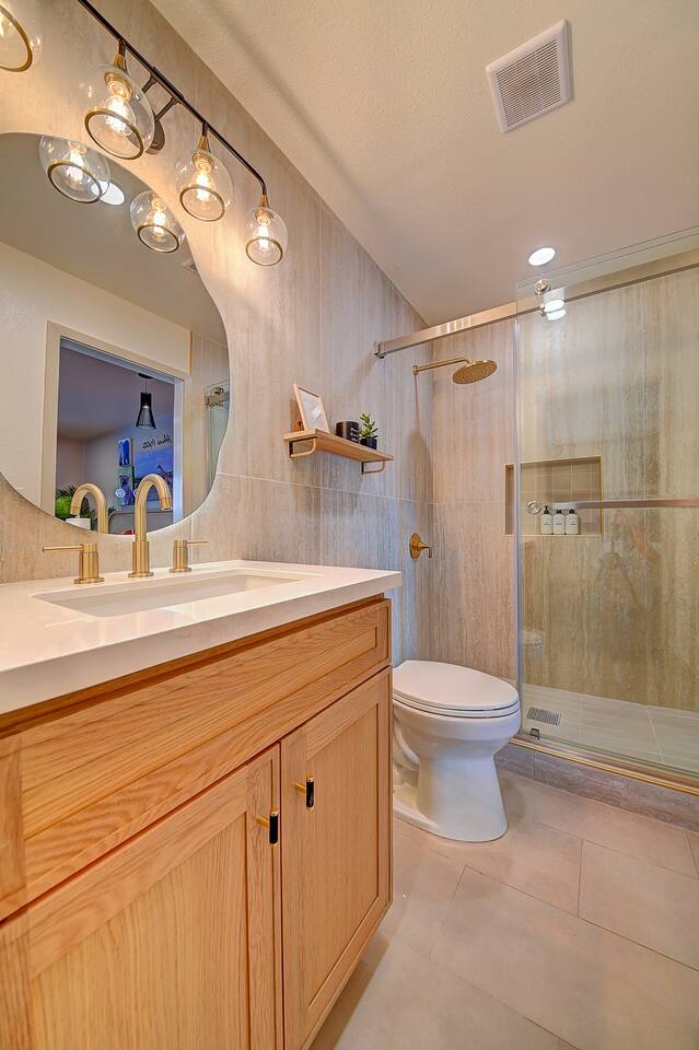 - Walk-in shower
